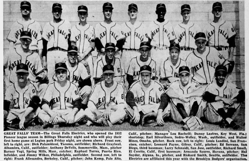 The 1952 Great Falls Electrics squad.
